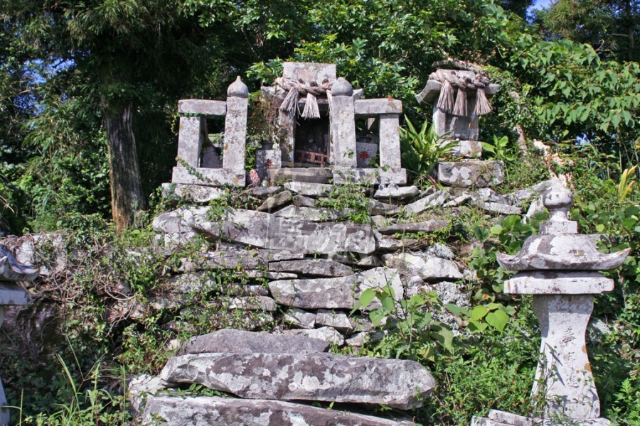天草最高峰倉岳の頂上にある倉岳神社。船の形をした石の彫り物がある珍しい神社で、多くの人々に信仰されています。