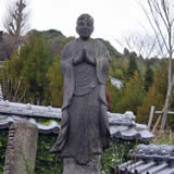 天草・島原の乱後の人心平定とキリスト教からの改宗を目的として建立された曹洞宗の禅寺、明徳寺。石段の入口に立つ異人地蔵は彫りが深く、文字通り異人の顔をしています。