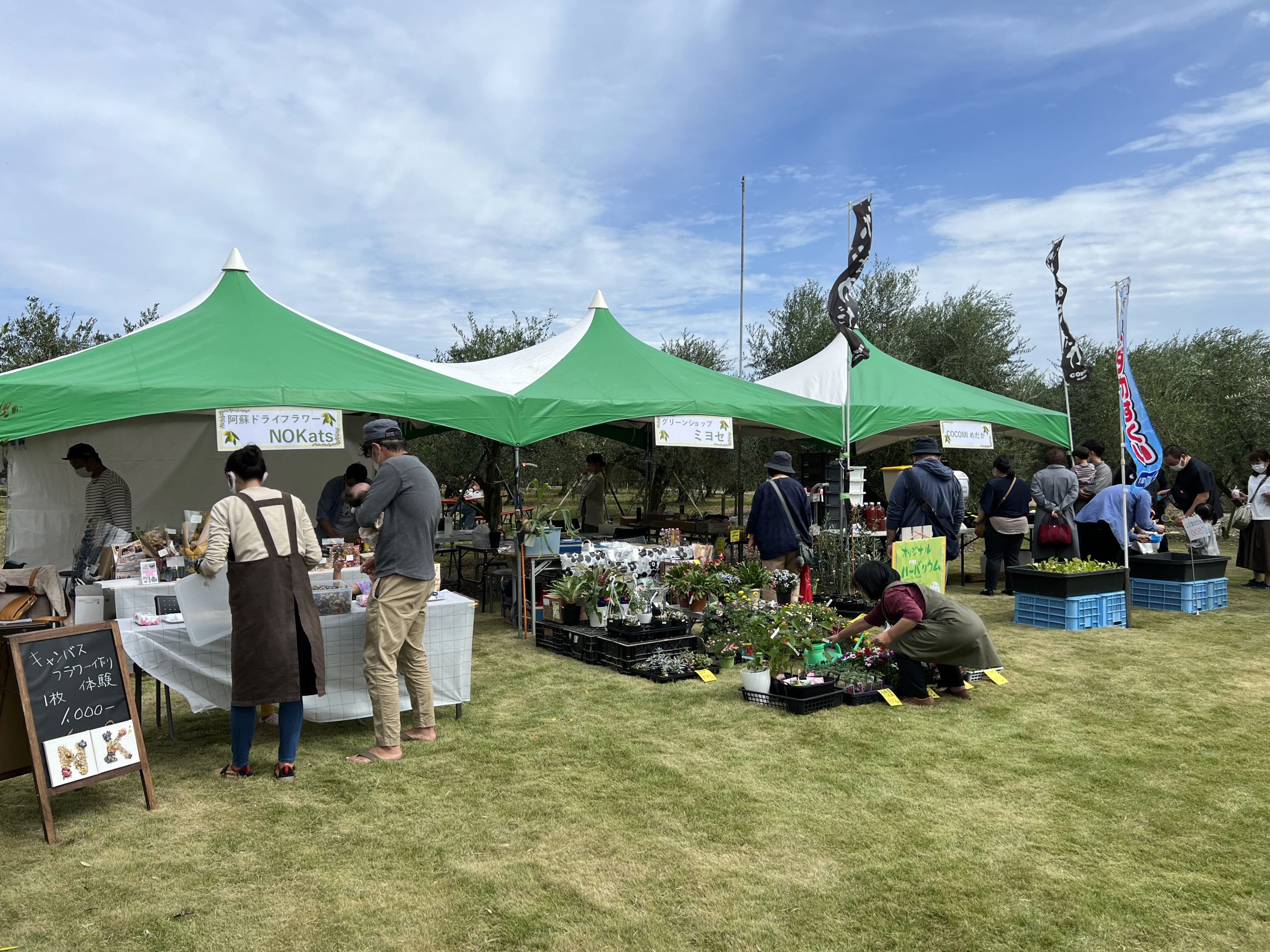 ほかにもオリーブ園ツアー(手摘み体験)や、搾りたてのオリーブオイルの試飲、出店ブースで買い物をするともらえるビンゴゲームなどなど沢山の催し物もあり、天気が良かったこともあって、とても賑わっていました。