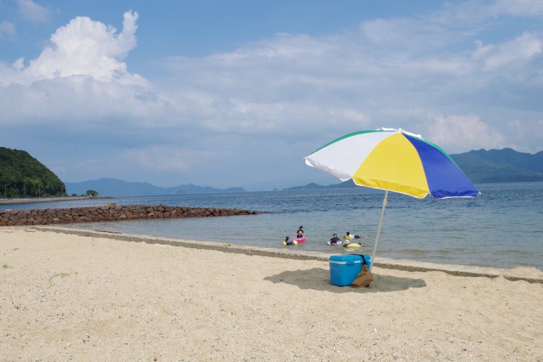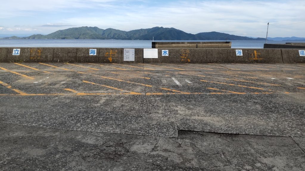 見えたら左折です。海沿いの道を進むと、立(たて)海水浴場へ到着します。