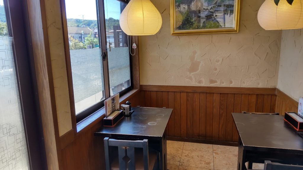 海咲がちゃんぽんを食べたお店です。入口すぐ左のテーブルで撮影されたそうです。