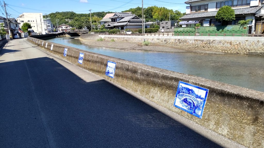 海咲の通った高校です。本渡橋を戻り、祗園橋のある方へ、そのまま道なりに進みます。途中道が狭いので川沿いのアズレージョ(陶板画)を眺めながら歩くかレンタサイクルがおすすめです。