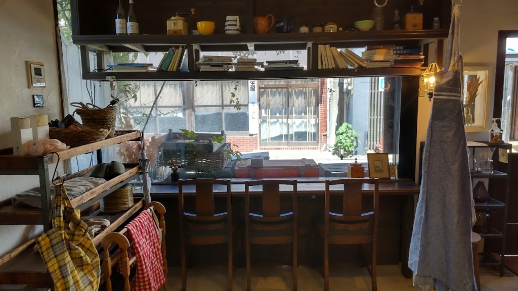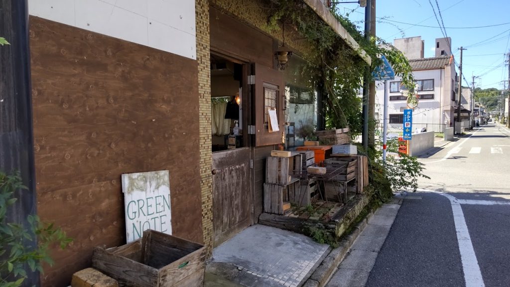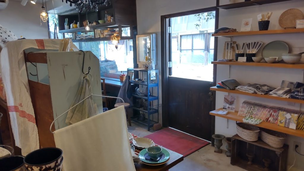 緑と木箱に積んであり、おしゃれな雑貨とカフェのお店です。ここでちょっとひと休みもいいですね♪ (※火曜 定休日)
