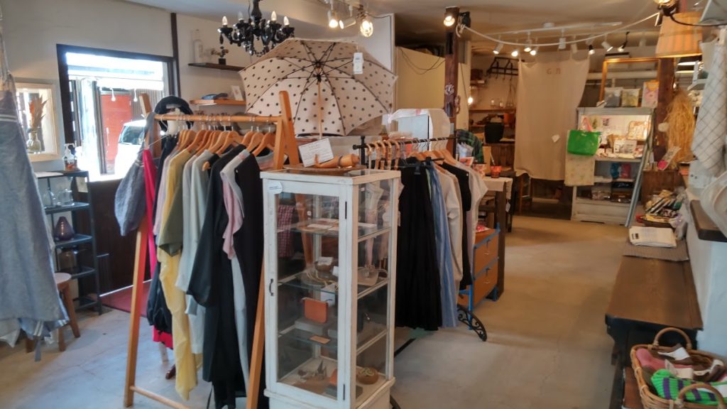 海咲がモノトーンのブラウスを購入したお店。本渡南小学校からそのまま5分程歩くと、諏訪神社駐車場入り口の隣のお店です。