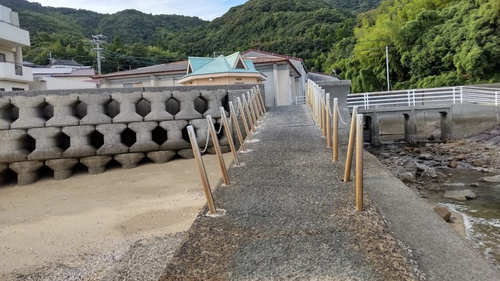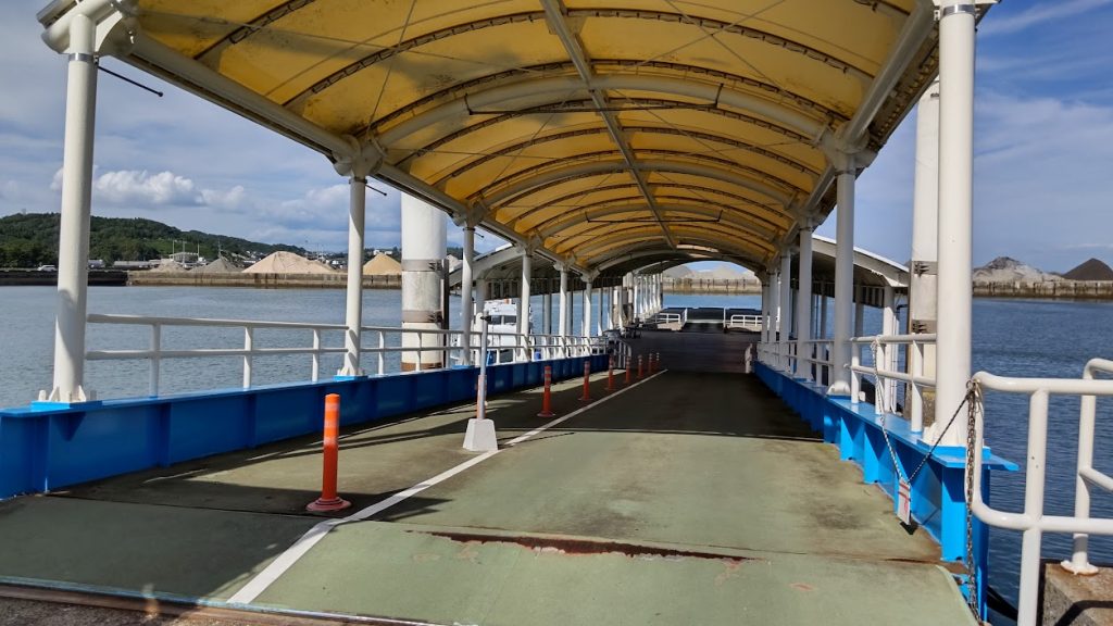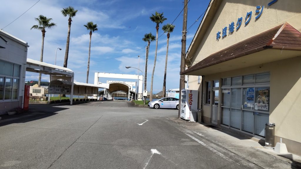 (海咲(みさき)が天草へ帰省。フェリーから降りた時、継父(辻村)の職場でもあるため、偶然見かける。ツタのある白い倉庫も近くにあります。)