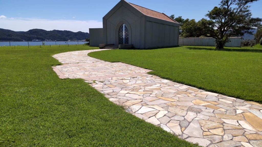 ポルトがある銀天街アーケード、祗園橋近くの八坂神社、天草キリシタン館へ行く途中のキリシタン墓地もほんのワンシーン映っていましたので、画面と同じアングルで撮ってきました。