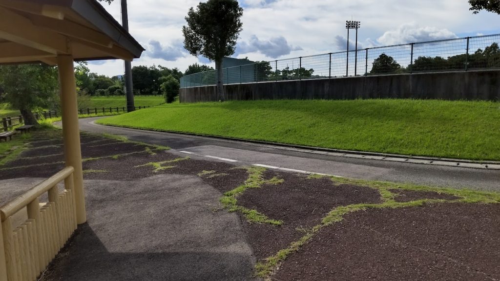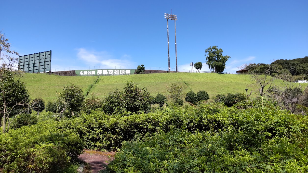 広瀬公園内に「長嶋茂雄球場」があり、球場下の駐車場に停めて、階段を上ると、海咲が歩いた場所と見下ろした地点があります。