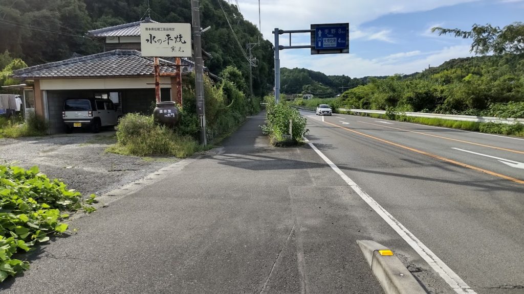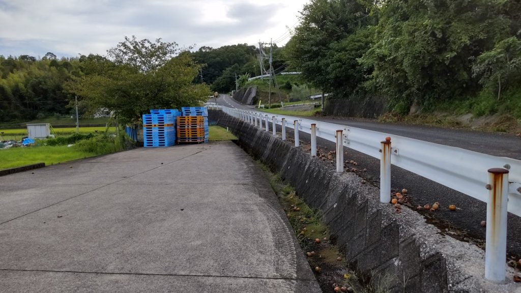 googleマップ通りに進むと、途中でカーブになった三叉路や田んぼ道を通るため、一瞬道を間違えたかと思いがちですが、その道を進んだ先に上の①の看板が現れます。