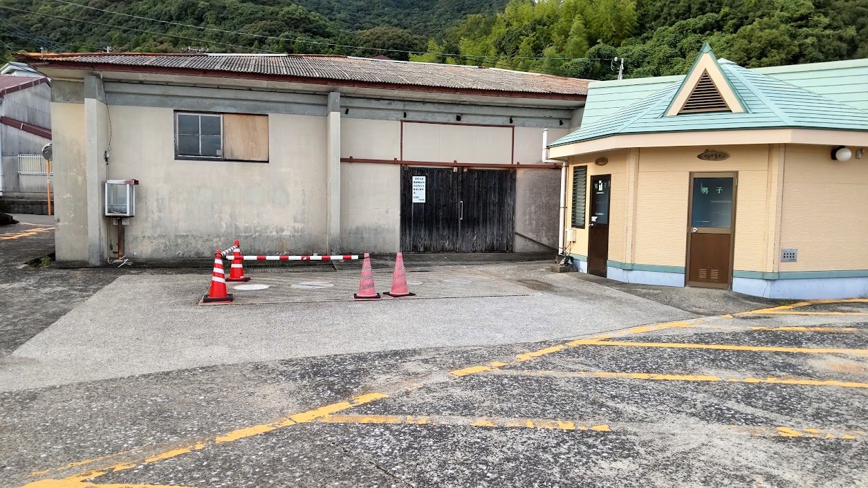 ここは、海咲が父の遺品の浮き輪を受け取った、NPO法人の建物でしたが、実際はJA倉庫とトイレでした。美術さんてすごいですね。