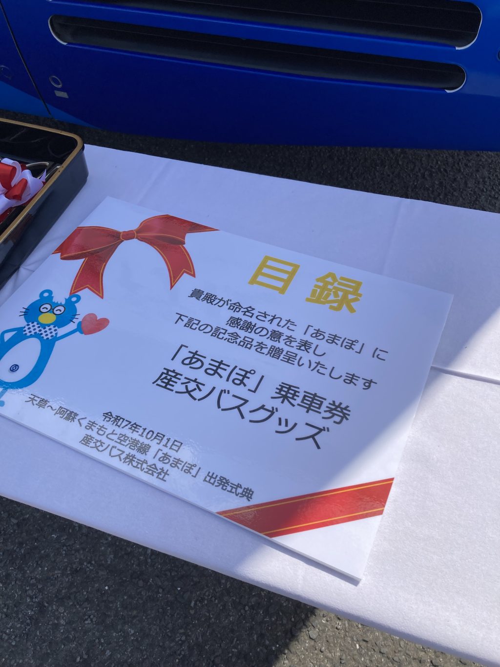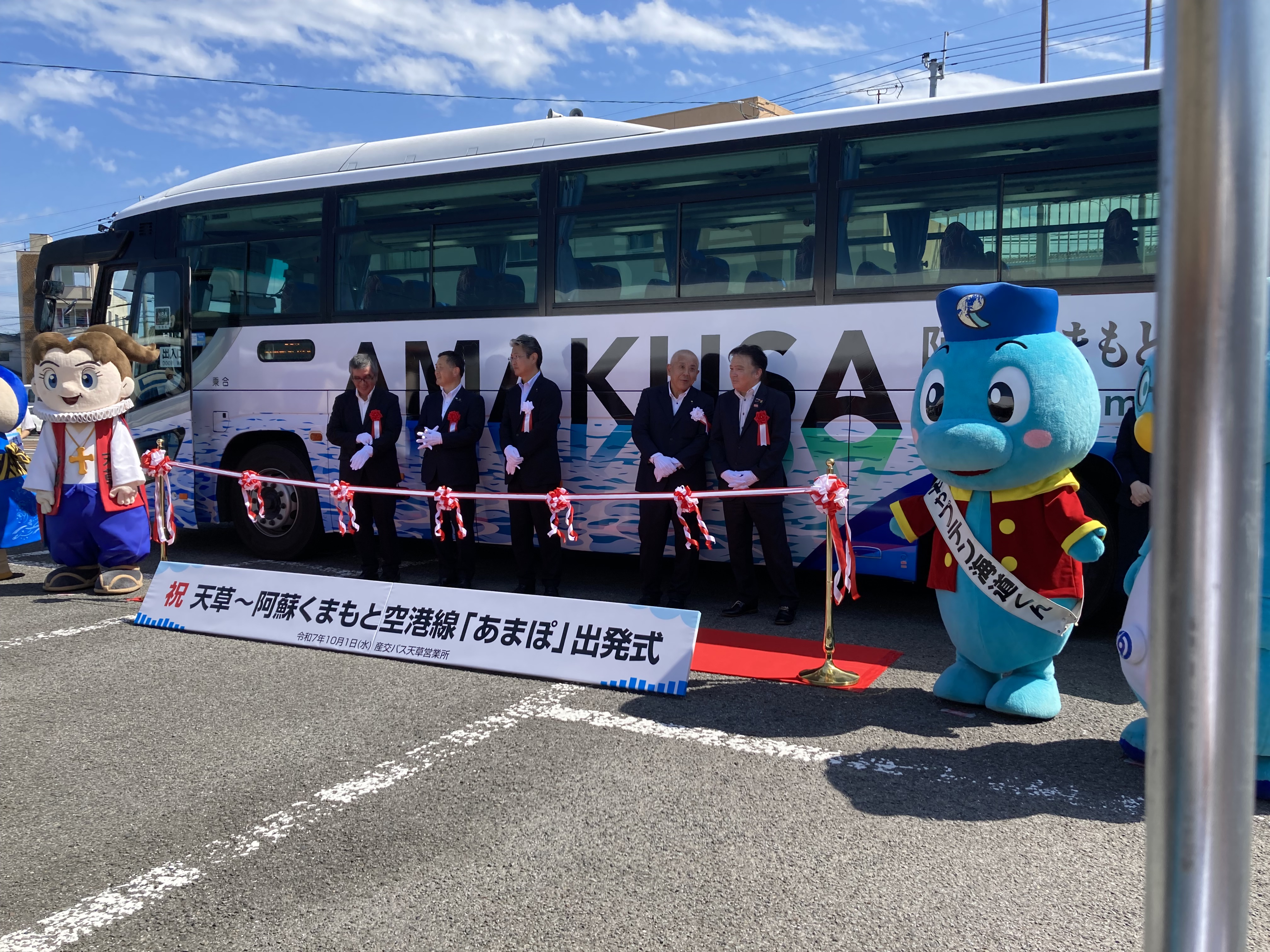 産交バスが運行する、天草⇔阿蘇くまもと空港線(通称「あまぽ」)が、10月1日(水)から運行開始となるのを記念して、出発式がおこなわれました。