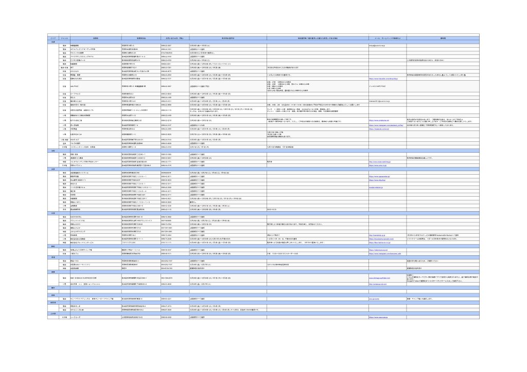 ※下記は当協会の情報収集の呼びかけに対し、ご連絡を頂いた店舗のみ掲載しております。