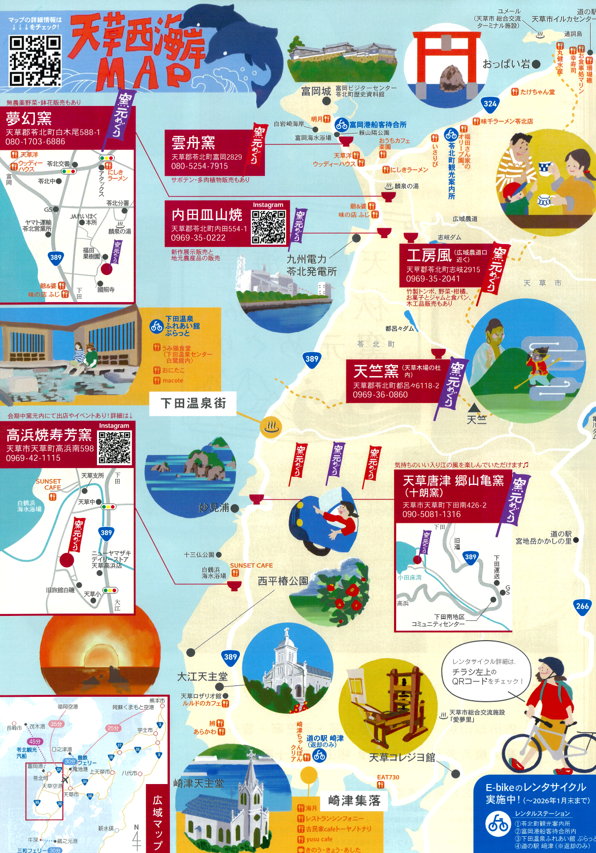 本イベントは天草市天草町および天草郡苓北町の各窯元をめぐっていただくスタイルとなっており、ご希望の窯元の商品が当たるスタンプラリーや、各窯元での催し物があり、天草西海岸の美しい景観を楽しみながら、陶磁器を楽しむイベントとなっています。