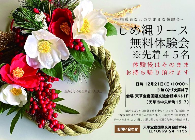 【名称】天草宝島国際交流会館ポルト自主事業 ~しめ縄リース 無料体験会~