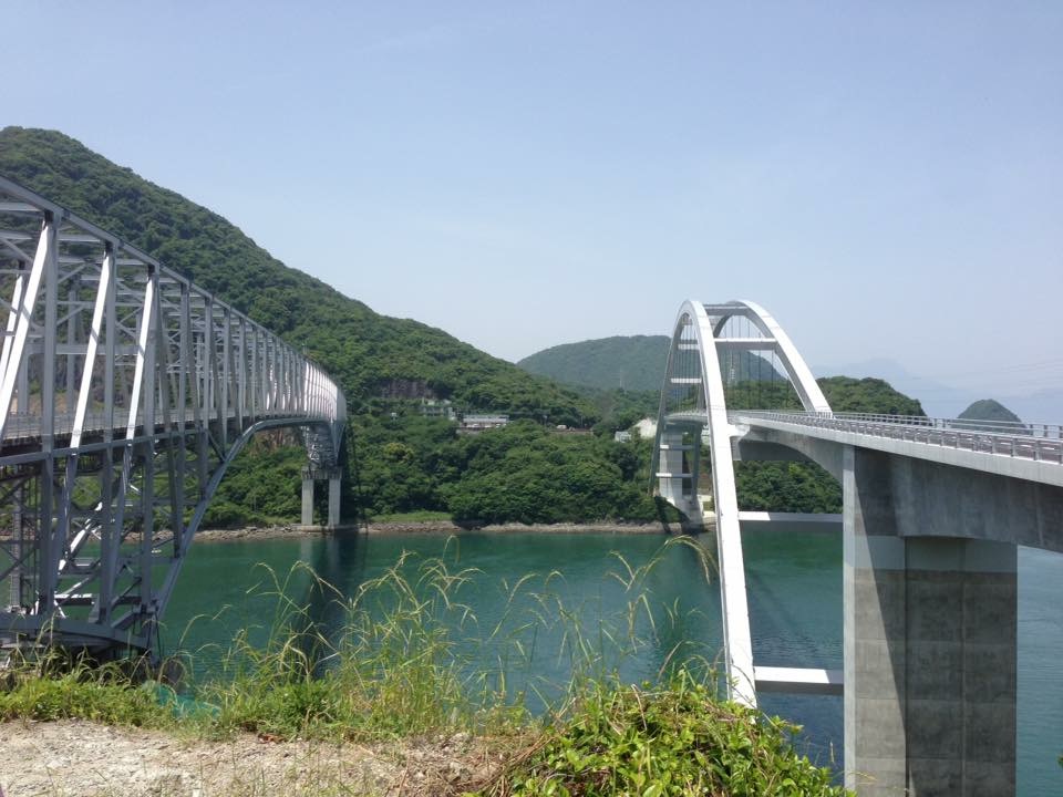 天草五橋は、九州本土の三角半島と天草諸島を結ぶ橋で、昭和41年完成です。三角から大矢野島・永浦島・大池島・前島を経て天草上島までに架けられている5本の橋をいいます。