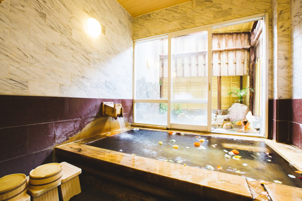 源泉かけ流しのお風呂は、天草陶石風呂と檜風呂の2種類。
