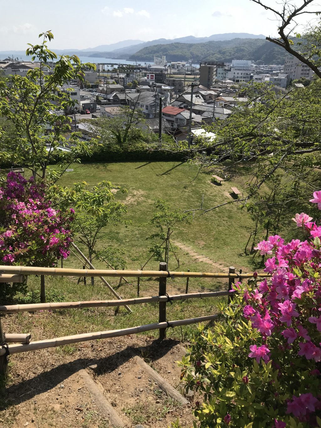 市街地の小高い丘にある公園の広場からは、市街地(旧本渡市)を見渡すことができます。春には丘全体を覆う、約150本の桜が訪れた方々を楽しませてくれます。