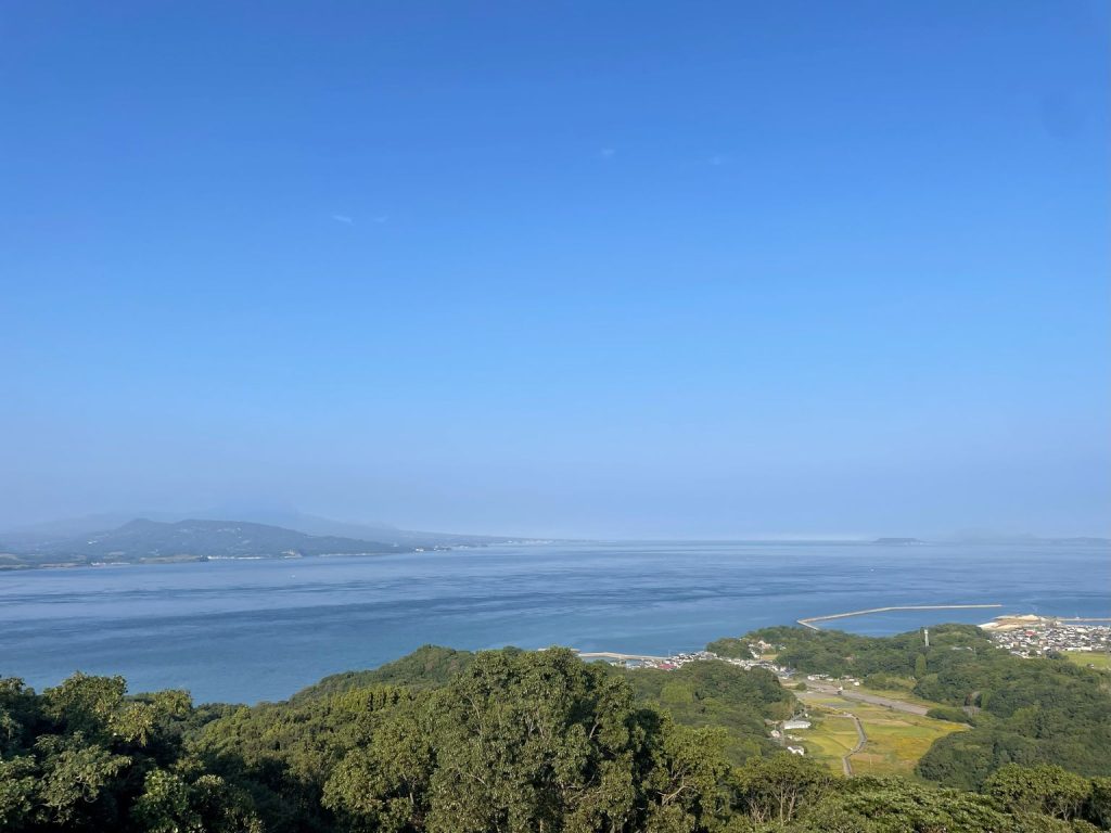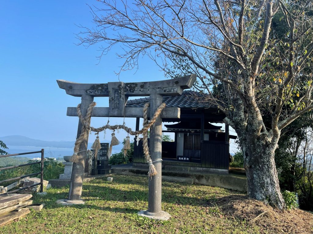 五和町の絶景スポット。山頂には鳥居と社があります。車で展望所付近まで登ることができ、島原や雲仙はもちろん、晴れていると熊本市内まで見ることも可能です。