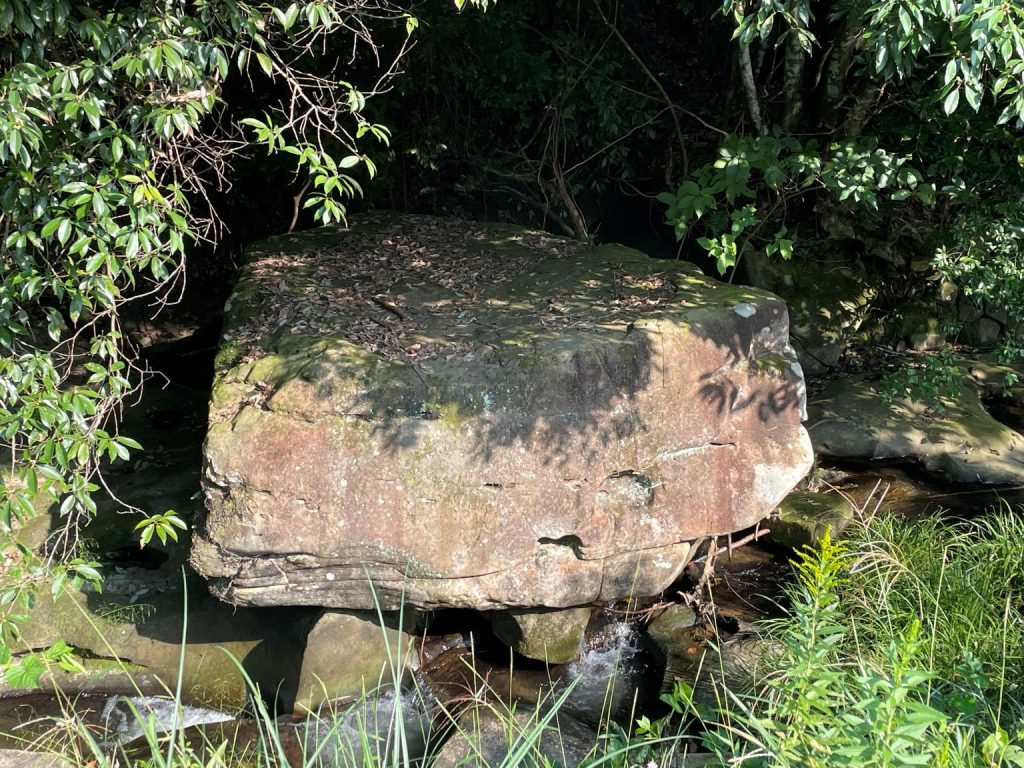 川のせせらぎが心地よい小さな川にドンと鎮座する鬼の碁盤石は、幅が3mほどある巨石です。天面や側面に、不思議な文字や文様を見る事ができます。戦国時代には、五和城木場の城主がこの場所で春と秋に宴を開いていた”という伝承も残っています。また碁盤岩の奥には、小さな滝があり、付近まで近づける遊歩道があります。
