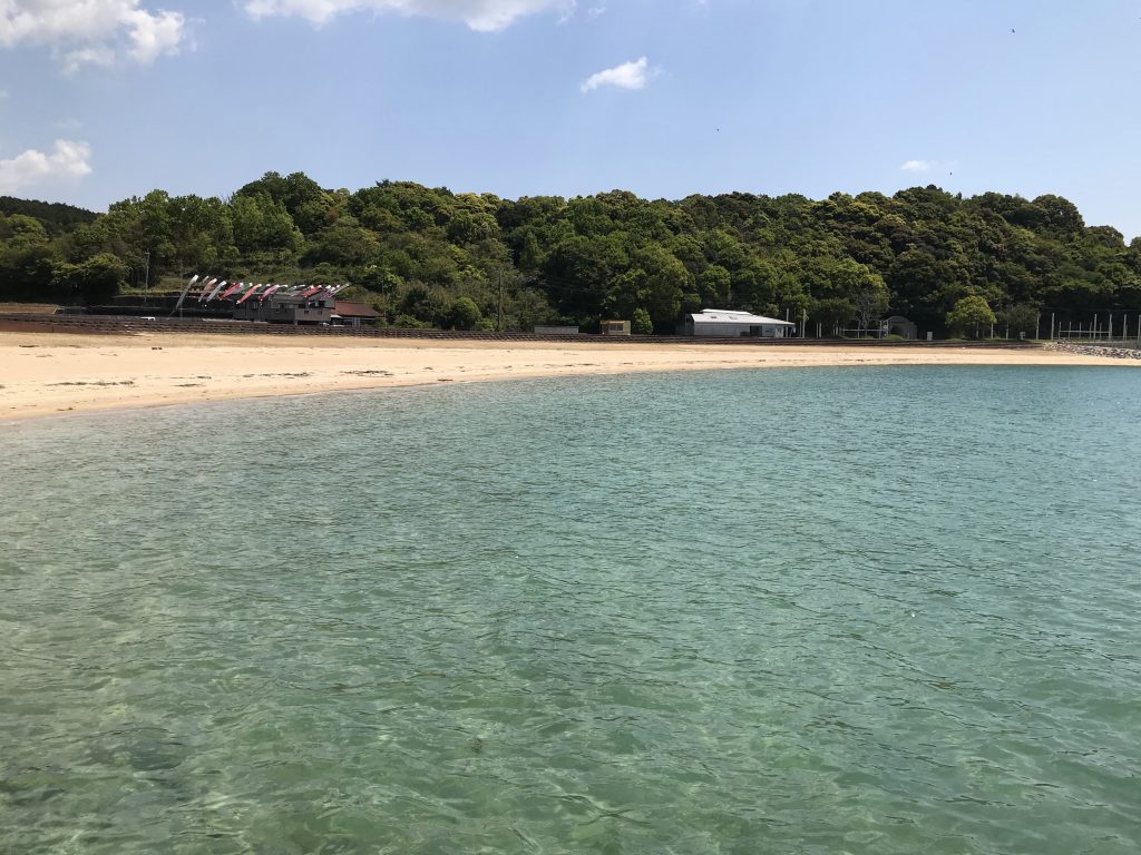 鯛夢トンネル(たいむ)を抜けるとえびすさんの見守る267mの白砂浜ビーチへ。